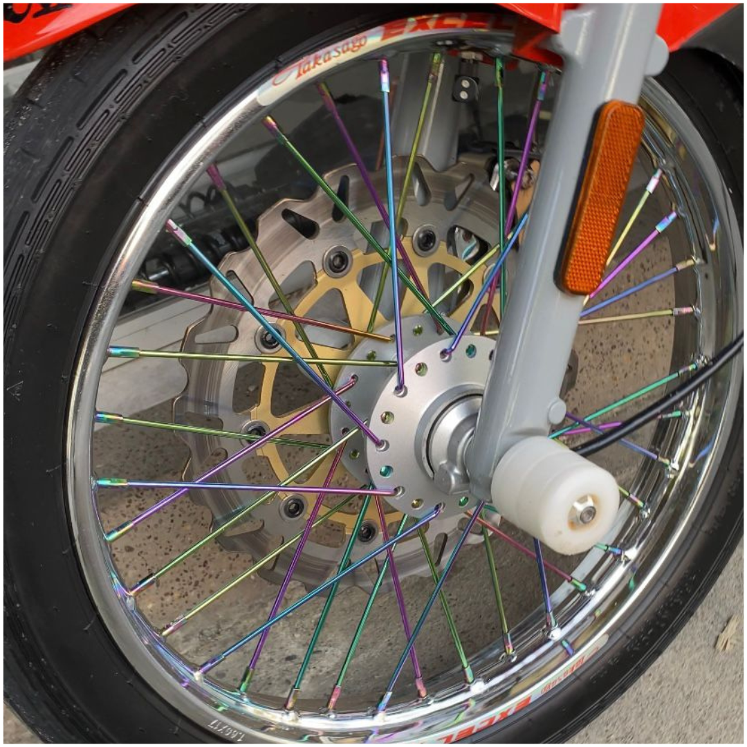 Beneficio al comprarlo: Mejora el estilo de tu moto con radios tornasol lisos de alta resistencia y durabilidad. Su acabado brillante aporta un toque personalizado y protege contra la corrosión.